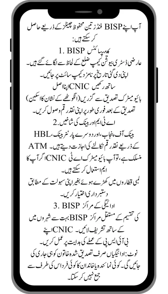 Under the BISP umbrella, the Kafaalat program delivers quarterly payments to verified families. Beneficiaries receive a fixed stipend of Rs. 13,500 every three months, transferred either through ATMs, bank branches, or BISP campsites.