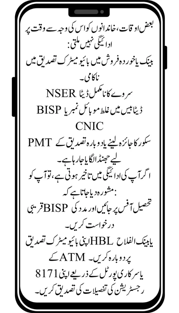• Incorrect mobile number or CNIC in the BISP database